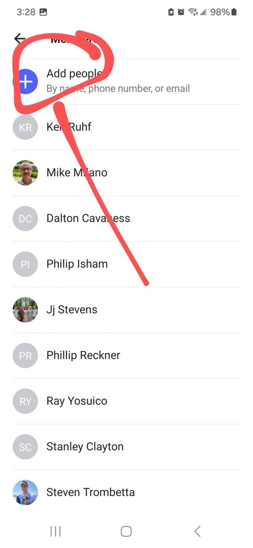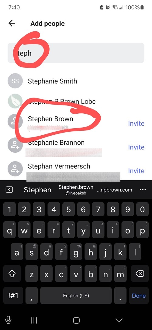 Start typing your new member's name or email address. If in your contacts, they will appear - select them. If not, enter their full email address and select "Add"