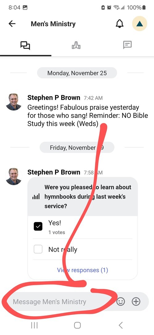 Utilize your Group in the church app to communicate with our members in your ministry: